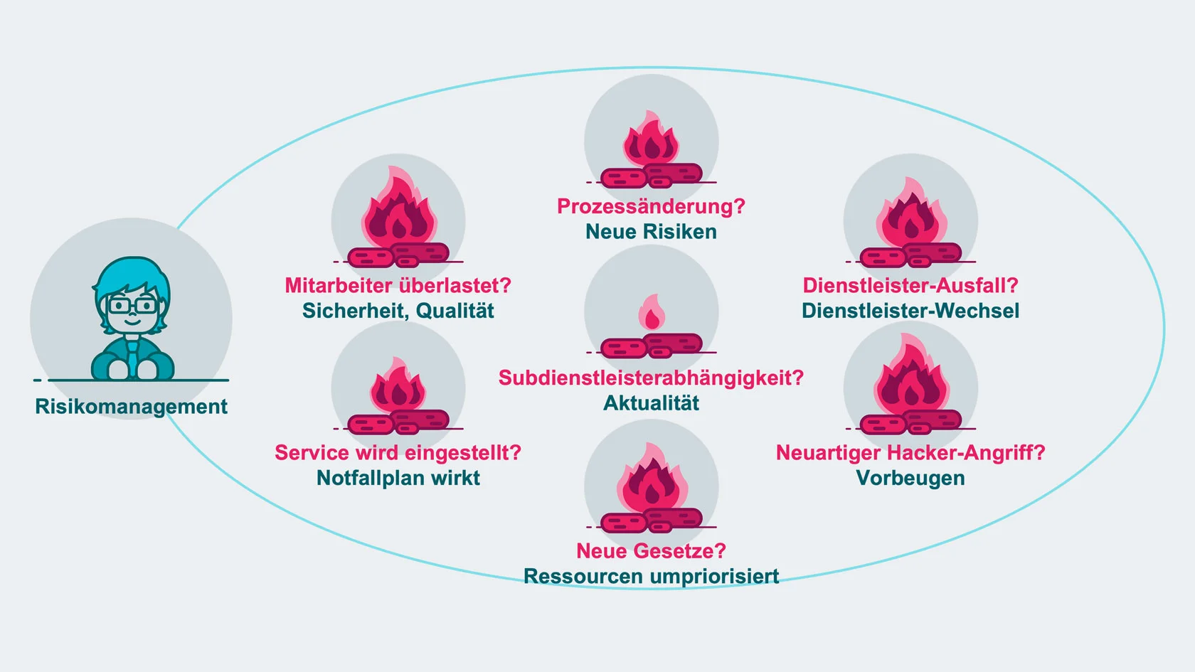 - Wenn ein Dienstleister fusioniert oder Subdienstleister austauscht, wodurch bestehende Notfallpläne nicht mehr wie geplant funktionieren.